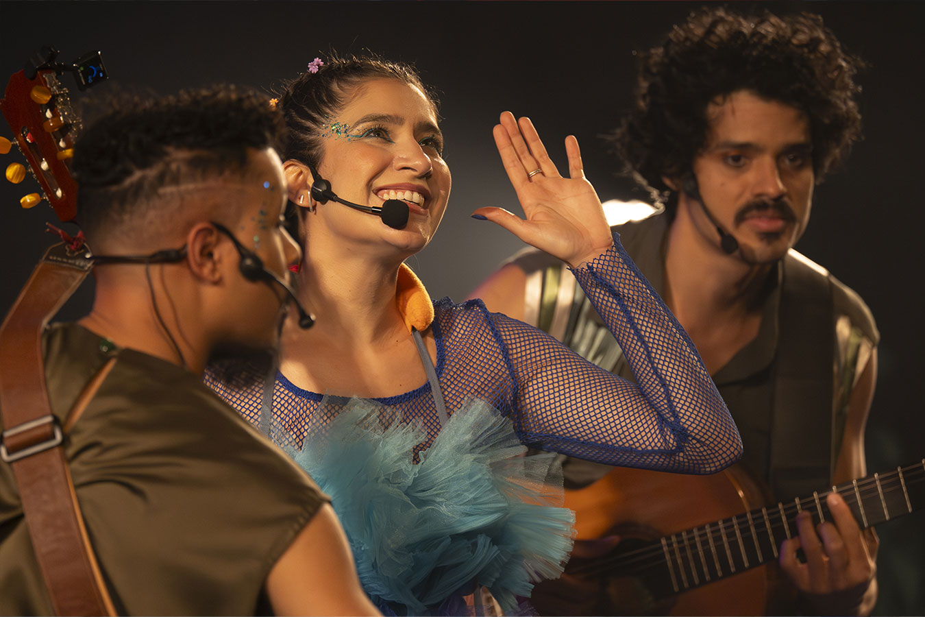 As histórias e músicas são interpretadas ao vivo por músicos (Carla Casarim, Guilherme Kafé, Sam Guibson e Guegué Medeiros) que brincam, contracenam e dão vida a diversos personagens que ajudam Nuni a encontrar o caminho até o mar.