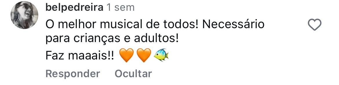 Recomendado para toda a família, “As aventuras do peixinho Nuni” é um musical divertido e apaixonante! Um espetáculo educativo que convida as crianças a aprenderem sobre coragem, cultura brasileira e africana, inclusão, meio ambiente, geografia, temporalidade, ancestralidade, estimulando a imaginação das crianças e trazendo um novo despertar da importância de entendermos nossos sentimentos e cuidarmos do planeta.