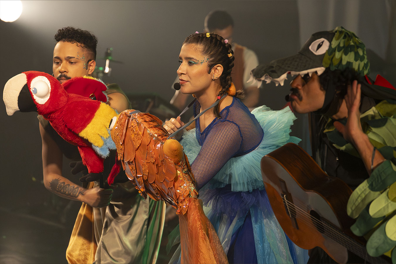 As histórias e músicas são interpretadas ao vivo por músicos (Carla Casarim, Guilherme Kafé, Sam Guibson e Guegué Medeiros) que brincam, contracenam e dão vida a diversos personagens que ajudam Nuni a encontrar o caminho até o mar.